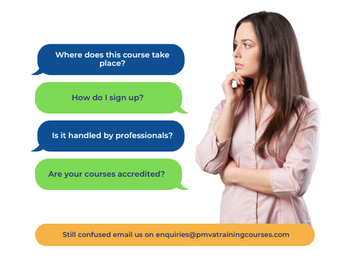 Our courses take place at our PMVA Training Centre in Romford, or we can attend on-site premises at a charge (if required).